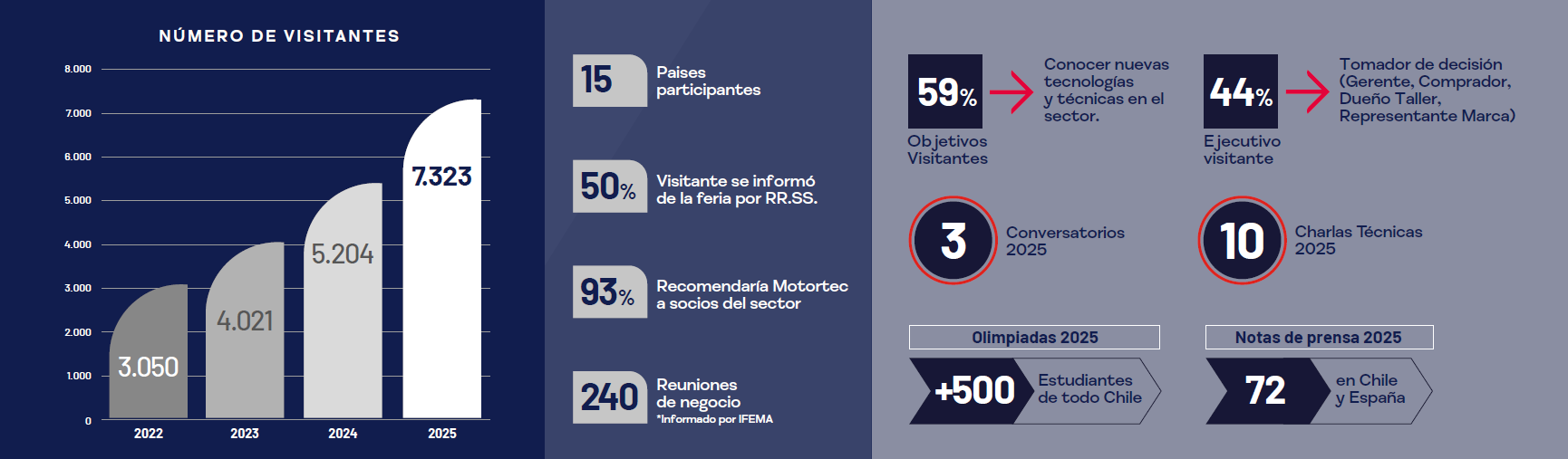 2025年智利汽车配件及售后服务展览会,简称Motortec Chile,由西班牙马德里国际会展(IFEMA MADRID)和埃斯帕西奥里埃斯科(ESPACIO RIESCO)主办,是汽配行业最具代表性的展会之一,旨在解决未来挑战汽车配件及售后行业的问题,为汽车行业提供交流和洽谈、展示创新和科技进步的平台。